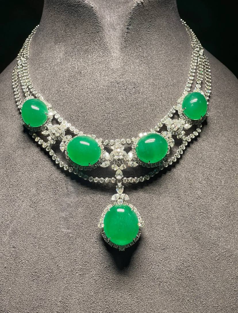 日本の高級宝飾市場では、特級翡翠の高額取引が屡々発生しています。2023 年 5 月、東京セントラルオークション(香港)の専門セールでは、「稀世の天然翡翠珠ネックレス」が 1500 万香港ドル超で落札され、日本円に換算すると約 3 億円に達しました。2024 年 10 月の東京国際宝飾ショーでも、エンペラーグリーン翡翠を使用したブローチが 1 億 2000 万円で取引されるなど、これらは単なる例外ではなく、高級翡翠市場の真の姿です。