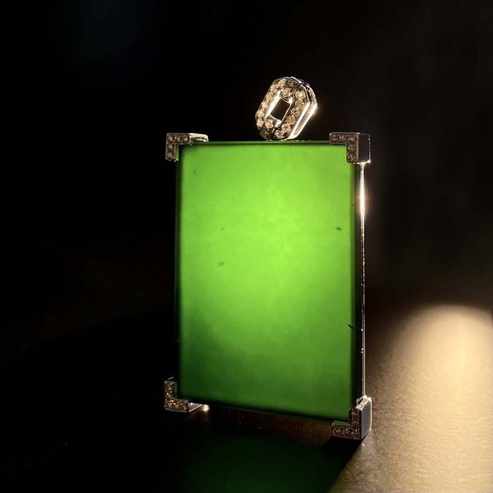 厚み豊かで質地細やか、强光下釉緑色が清らかに鮮やか。デザイン簡素大方で百搭、最高級墨翠の逸品。