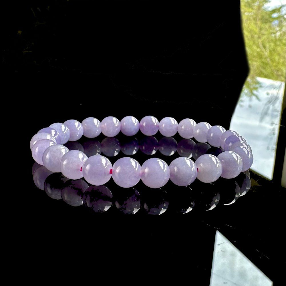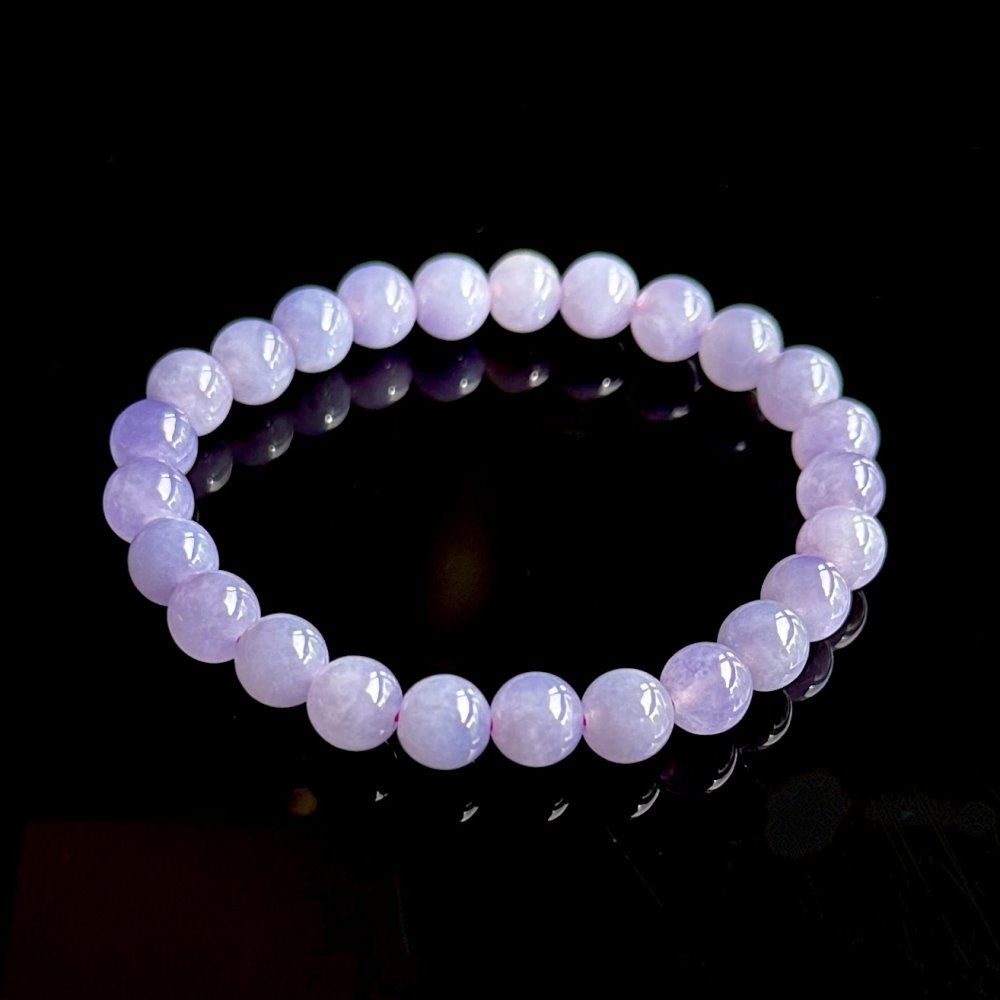 一つひとつ珠円玉潤、氷透き紫藤色は濃厚ロマンチック。腕に着ければ神秘で甘やかな魅力が際立つ。