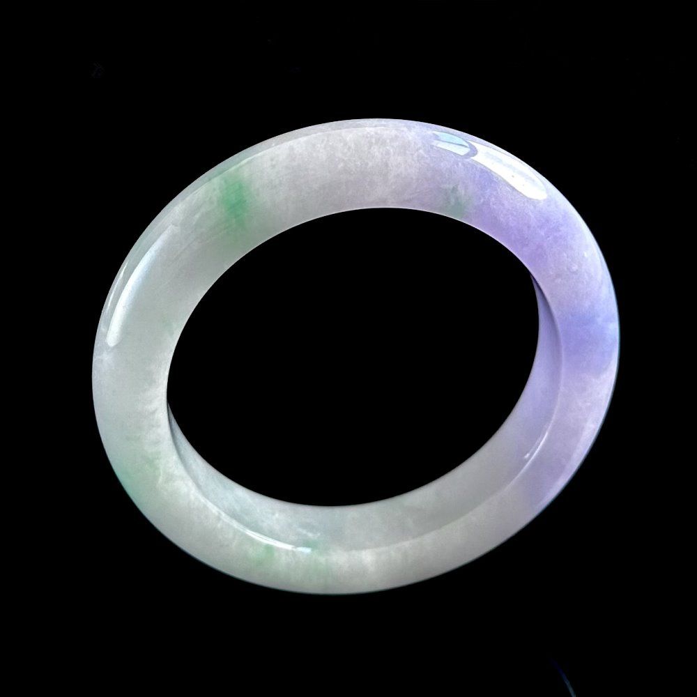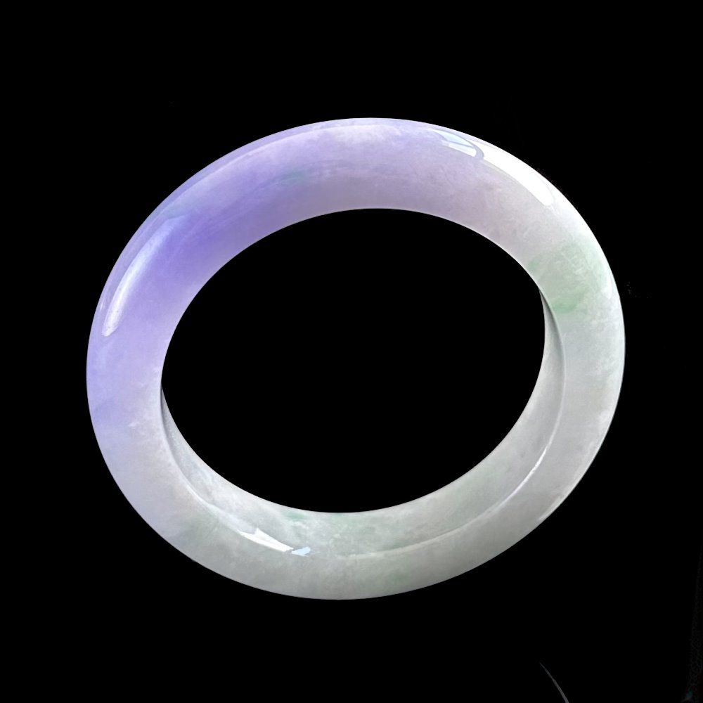 質感は氷のように潤い豊かで、優美な紫羅蘭色(すらん)と緑色が見事に交差し、活気に満ちながらロマンチックな雰囲気を放ちます。腕に着けると、瑞々しい霊気が漂い、品格を引き立てます。